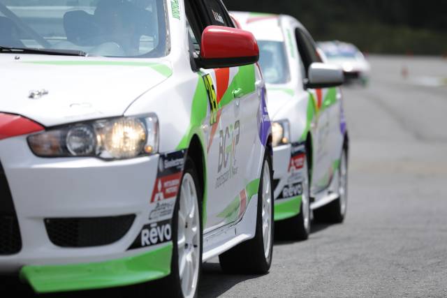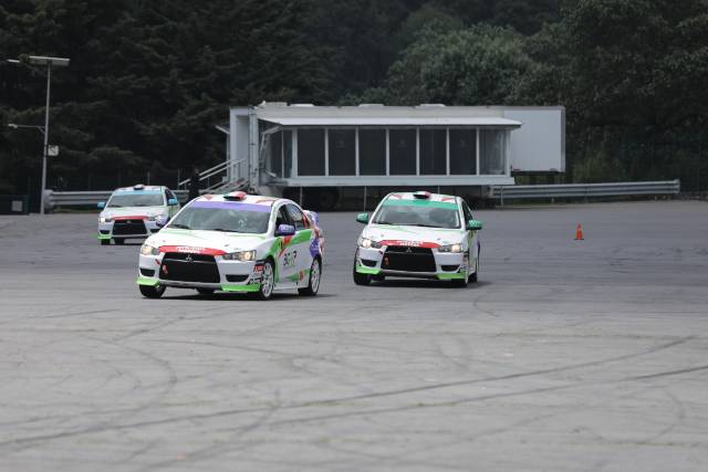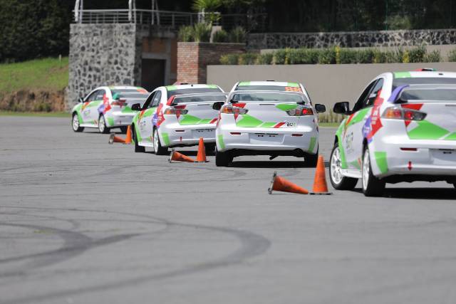 El curso se imparte en autos Mitsubishi Lancer DEG2 de Rally con equipamiento de seguridad, asientos, cinturones de 5 puntos, jaula antivuelco transmisión manual.